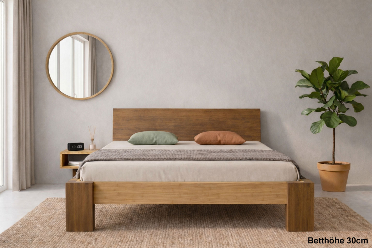 Bambus ist härter als Eiche, daher ist Bambus ein zuverlässiges und langlebiges Material für den Möbelbau. Bambus ist der am schnellsten nachwachsende Rohstoff der Welt, das schont andere Holzbestände und macht Ihr Bett besonders stabil.