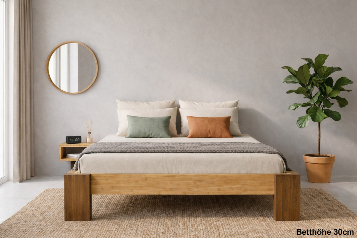 Bambus ist härter als Eiche, daher ist Bambus ein zuverlässiges und langlebiges Material für den Möbelbau. Bambus ist der am schnellsten nachwachsende Rohstoff der Welt, das schont andere Holzbestände und macht Ihr Bett besonders stabil.